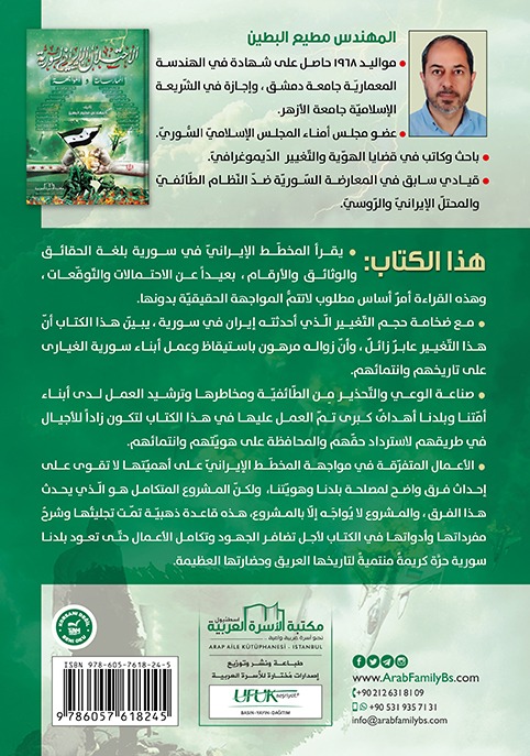 يقرأ المخطّط الإيرانيّ في سورية بلغة الحقائق والوثائق والأرقام، بعيداً عن الاحتمالات والتّوقّعات، ومع ضخامة حجم التّغيير الّذي أحدثته إيران في سورية، يبيّن هذا الكتاب أنّ هذا التّغيير عابرٌ زائلٌ، وأنّ زواله مرهون باستيقاظ وعمل أبناء سورية الغيارى على تاريخهم وانتمائهم. إن صناعة الوعي والتّحذير مِن الطّائفيّة ومخاطرها وترشيد العمل لدى أبناء أمّتنا وبلدنا أهدافٌ كبرى تمّ العمل عليها في هذا الكتاب لتكون زاداً للأجيال في طريقهم لاسترداد حقّهم والمحافظة على هويّتهم وانتمائهم.