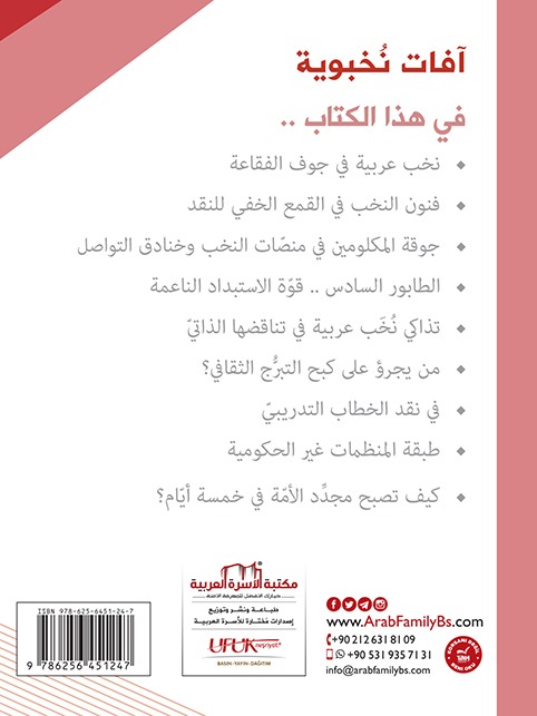 هذا الكتاب مرآة نقدية كاشفة لآفات نخبوية، فهو يكشف النقاب عن معضلات وأزمات تنتاب أوساط نخبوية في الواقع العربي على وجه الخصوص دون أن يعني أنّه استثناء عن الاجتماع الإنساني عموماً.
